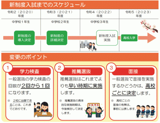 現在の中学2年生の生徒たちの高校入試が、新制度のスタートとなります。